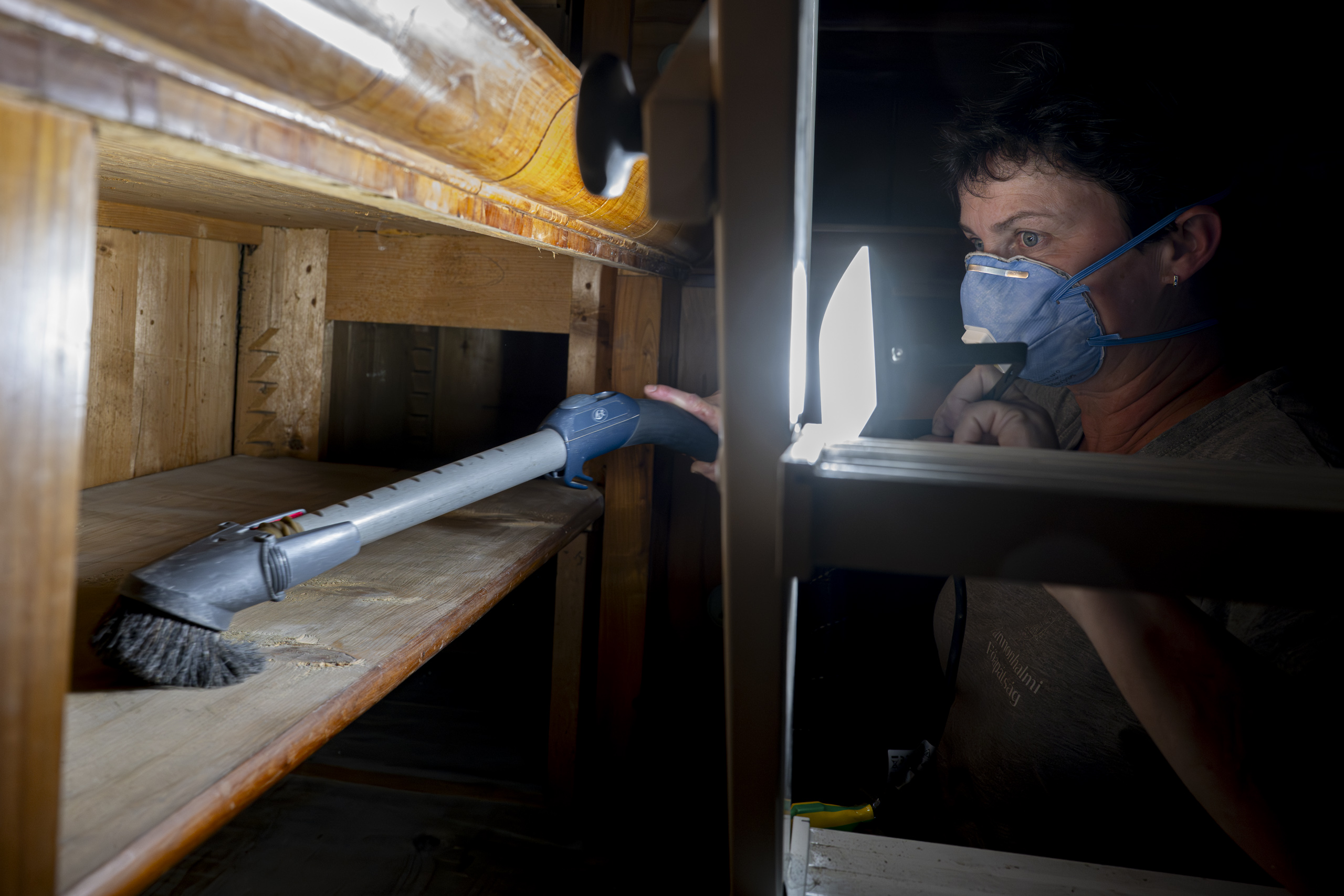 A teljes képhez tartozik, hogy Árpád és kollégái nem sokra mentek volna a Főapátság takarítócsapatának fontos és lelkes munkája nélkül. Nyugodtan kijelenthető, hogy a siker az alapos takarítástól indul, mert a polcokon lerakódott por 80 százaléka szerves anyag, ami például a már említett penészek, rovarok táptalaját jelentheti. A megfelelő előzetes portalanítás, takarítás nélkül a faanyagvédelmi munka szinte semmit sem érne. A restaurátorok által megóvott könyvállomány így már egy védett és tiszta felületre kerülhet vissza.