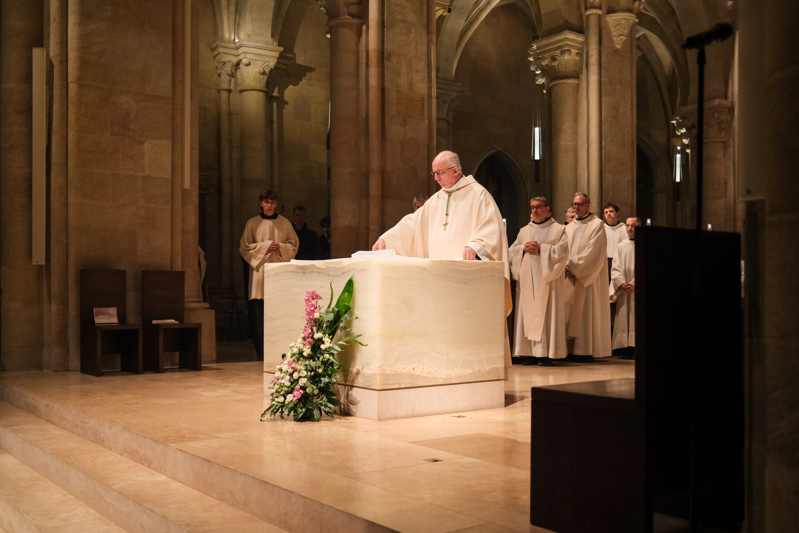 Ahogy az utolsó vacsora előtt Jézus megmosta a tanítványok lábát, példáját követve a nagycsütörtöki szentmisében Cirill főapát mosta meg szerzetestársaiét. A liturgia végén pedig szintén ő végezte el az oltárfosztás szertartását. Minden díszt eltávolított az oltárról jelképezve Jézus elfogását és elhurcolását. A szentmisén igehirdetésében Konrád atya is erre a gesztusra irányította a figyelmet. A következőkben a 2026. április 2-án, Nagycsütörtökön elhangzó homíliáját teljes egészében közöljük.