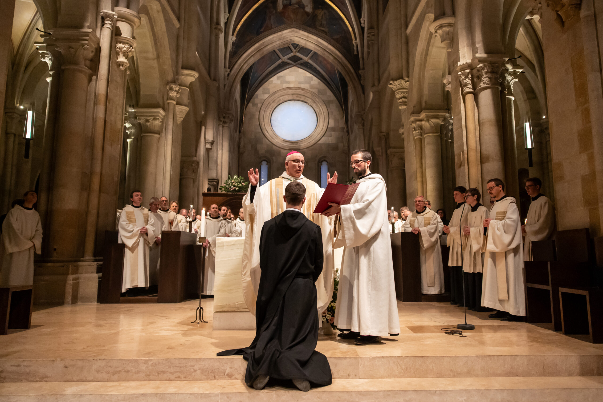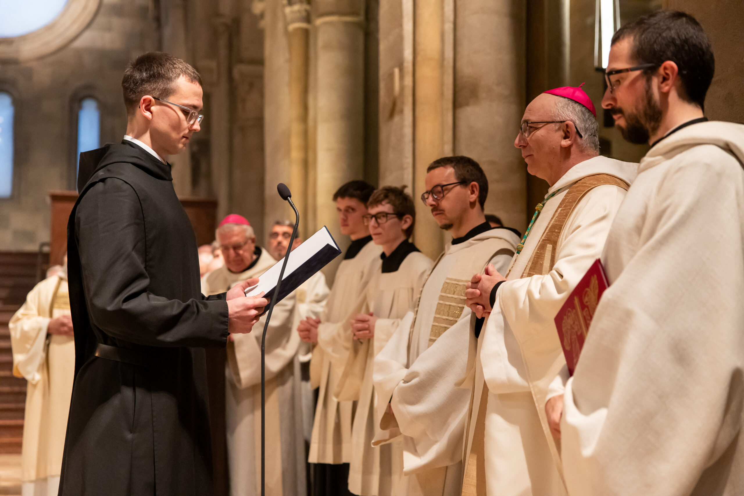 „Kedves Fiam! Mit kérsz Istentől és szent Egyházától?” – tette fel neki a kérdést Hortobágyi T. Cirill főapát az örökfogadalom liturgiájának kezdetén. „Hogy az Úr szolgálatában és Szent Benedek családjában mindhalálig állhatatosan megmaradhassak” – jött a válasz. Majd az igehirdetéssel folytatódott a liturgia.