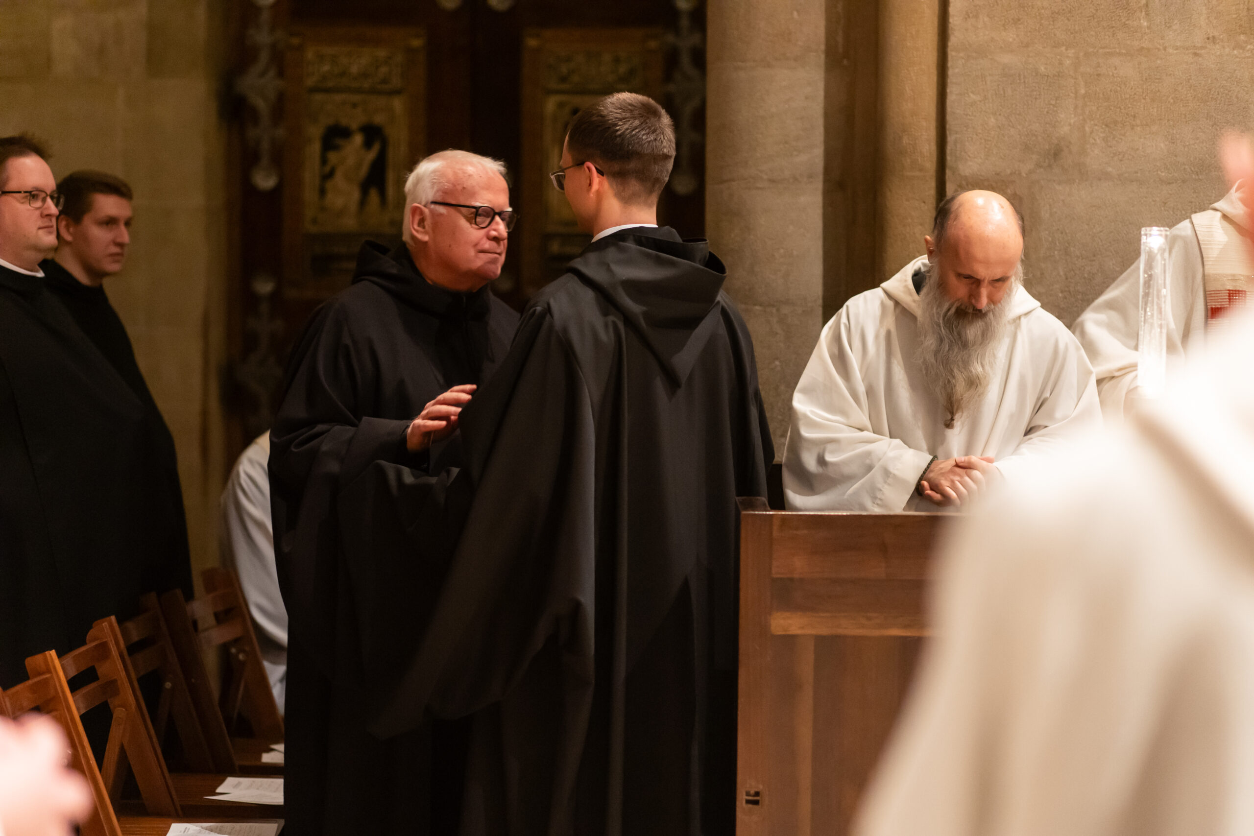 Az örökfogadalmas testvérekkel váltott békecsók. Brúnó testvér számára ez volt a legmegindítóbb pillanata a szentmisének, amelyben örök életre elköteleződött. „Szerzetestársaim is várták az örökfogadalmam és biztattak. Ez a gesztus pedig azt jelképezi, hogy tényleg befogadtak a közösségbe” – mondta. Tóth Brúnó 2025. február 2-án családja, a pannonhalmi, a bakonybéli, a tihanyi és a győri szerzetestesvérek, barátai, tanítói, egykori és jelenlegi diákjai, valamint volt iskolatársai előtt tett örökfogadalmat a Szent Márton-bazilikában.