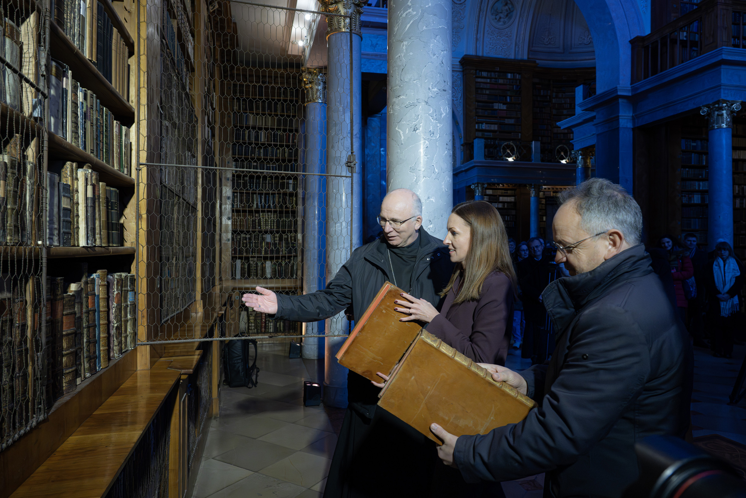 Az utolsó megtisztított könyvek visszahelyezésével szimbolikusan is újra használatba adta Hortobágyi T. Cirill főapát és Kiss-Hegyi Anita kulturális kapcsolatokért felelős államtitkár a Pannonhalmi Főapátsági Könyvtárat 2026. január 20-án. A klasszicista teremkönyvtárat 2025. júniustól zártuk be a mintegy százezer kötetet veszélyeztető kenyérbogár-fertőzés miatt.