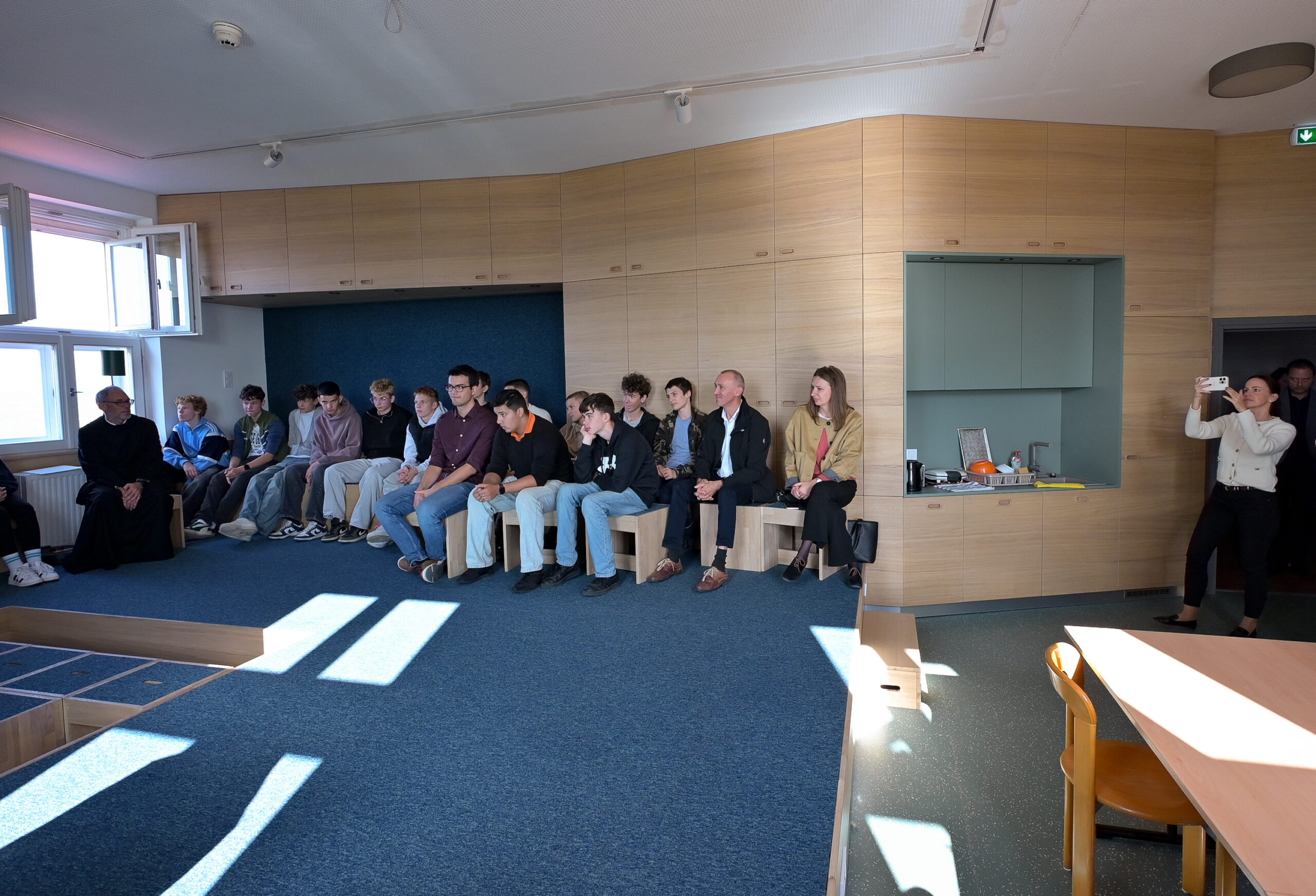 Közvetlen és kedvesen zsúfolt kép, amikor két államtitkár, két sztárépítész, egy főapát, egy igazgató, három tanár és huszonsok kilencedikes gimnazista közösen belaknak egy teret. A Pannonhalmi Bencés Gimnázium feszített munkával, fél év alatt megvalósított kezdeményezése, az osztálynappali adta az apropót és a helyszínt is ahhoz, hogy ennyi, nagyon különféle ember egy tanórányi időt együtt töltsön. Soltész Miklós és Nacsa Lőrinc államtitkárok rendhagyó osztályfőnökin adtak át egy – ma még – rendhagyó teret a diákoknak 2025. október 13-án.