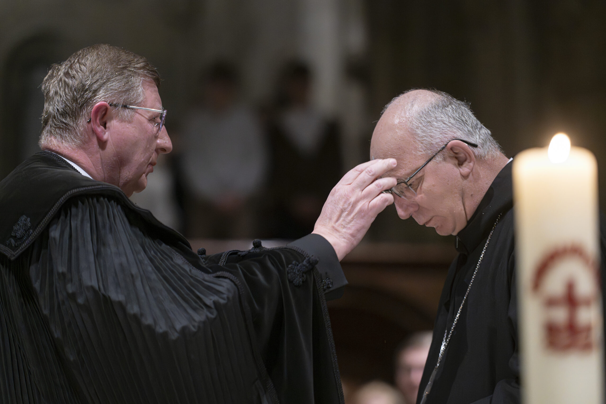 Az igehirdetés után megáldották a hamut, amellyel előbb Fekete Károly püspök és Cirill főapát hintette meg egymás fejét kereszt alakban, majd a társegyházak lelkipásztorai, a szerzetesközösség és az egybegyűltek is fogadták a hamu jelét.